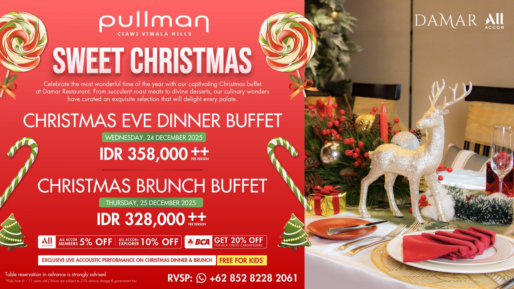 Dirancang untuk menghadirkan nuansa berbeda pada setiap hidangan, prasmanan Malam Natal memadukan hidangan klasik yang menenangkan dengan sorotan pilihan, mulai dari daging panggang yang lezat hingga hidangan penutup yang dibentuk untuk menutup malam dengan kehangatan. Pengalaman ini berpusat pada kebersamaan, mengajak para tamu untuk menjelajahi cita rasa sambil berbagi perspektif di meja makan.