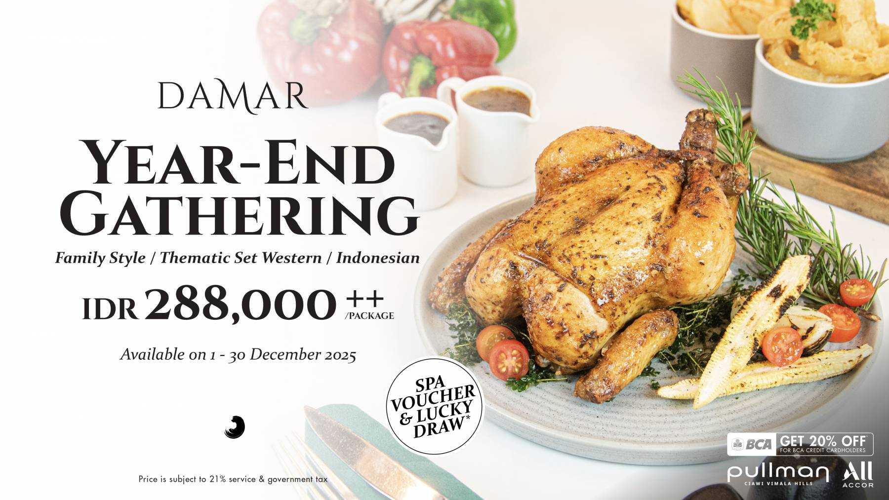 Momen yang dirancang untuk tim, keluarga, dan kelompok yang ingin menutup tahun dengan penuh makna. Pilihlah antara Gaya Keluarga, Set Tematik Barat, atau Indonesia, masing-masing dirancang untuk mendorong interaksi dan aliran kolektif. Hidangan-hidangan ini menyeimbangkan kekayaan dan kejernihan, ayam panggang utuh, sayuran segar, dan saus spesial yang berpadu untuk menghidupkan suasana meja makan.