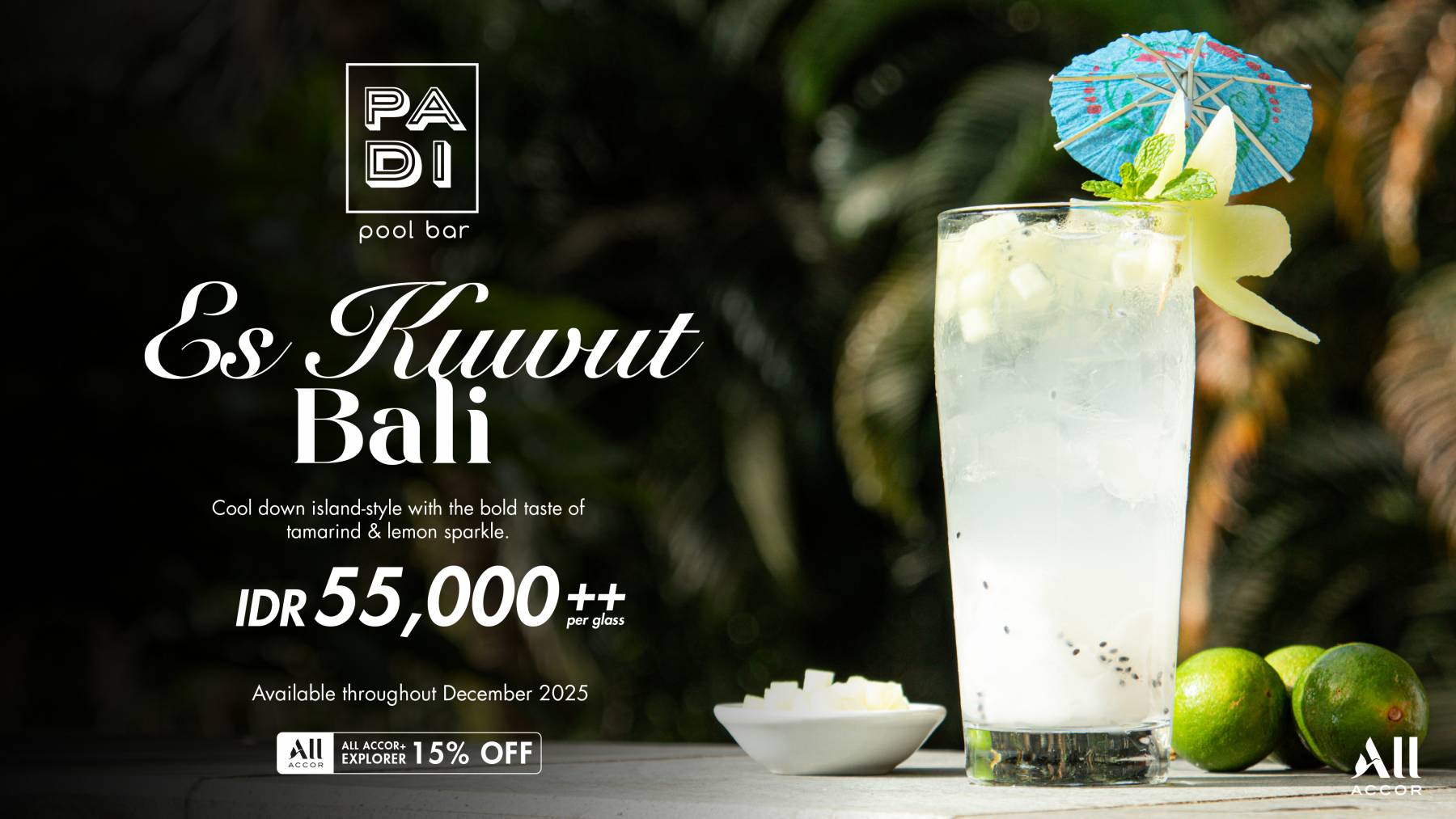 Es Kuwut Bali menghadirkan energi kesegaran tropis dalam satu gelas. Asam jawa menghadirkan ketajaman yang lembut, sementara kilau lemon menciptakan kesegaran yang menyegarkan, menyatu sebagai minuman yang menyejukkan, menyegarkan, dan menyatu dengan mudah dalam irama hari yang cerah di Padi Pool Bar.
