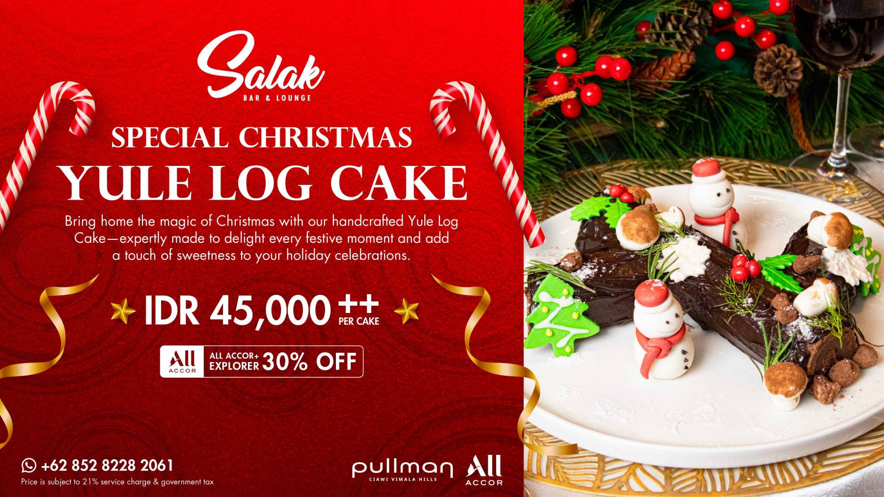 Kue Yule Log di Salak diracik dengan cermat, cokelat yang kaya, tekstur yang lembut, dan detail dekoratif yang menangkap kehangatan Natal. Dirancang untuk menghadirkan kegembiraan di meja makan, kue ini menawarkan rasa manis yang lembut untuk melengkapi kebersamaan, refleksi, dan keteduhan perayaan akhir tahun.