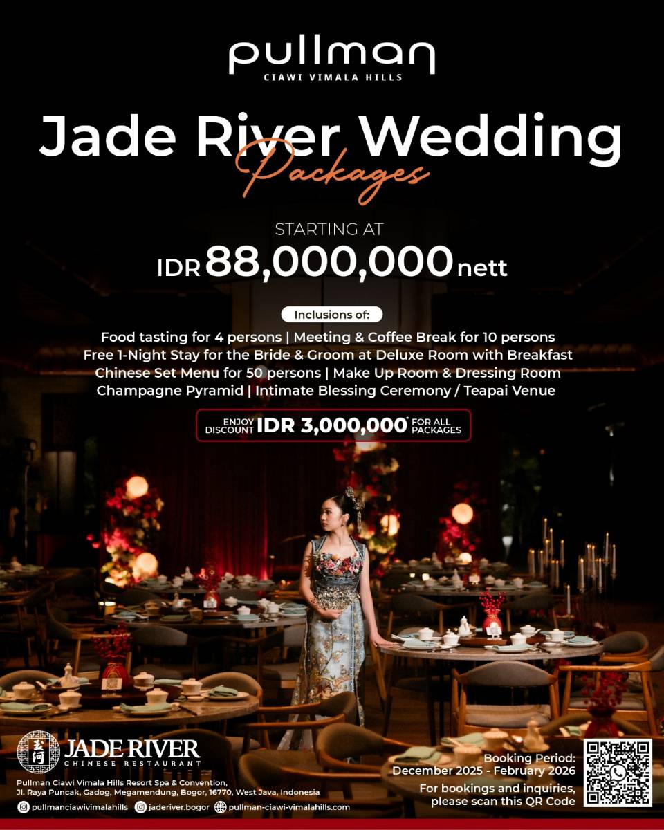 Set within Pullman Ciawi Vimala Hills Resort & Spa, Jade River offers a setting shaped by balance. Heritage and modernity. Ceremony and ease. Intimacy and scale.