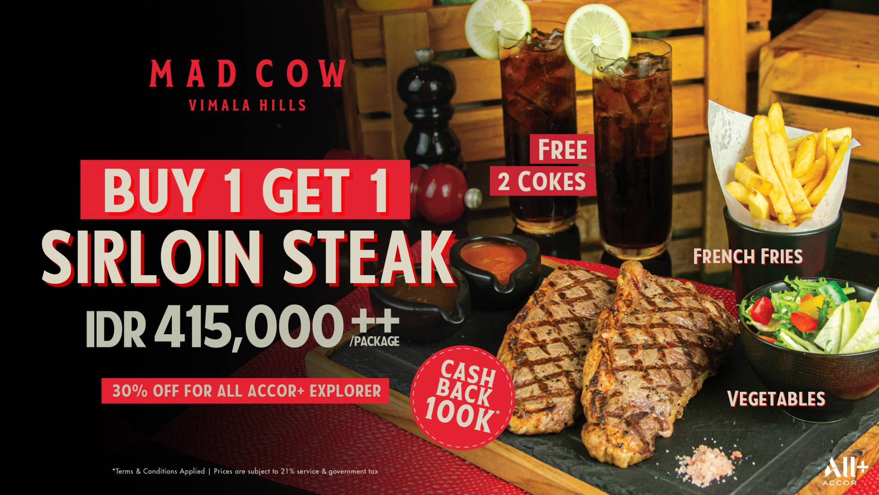 Each plate is accompanied by crisp French fries, seasonal vegetables, and classic accompaniments, allowing the richness of the beef to remain the centre of attention. Two chilled cokes complete the experience, creating an easy balance between indulgence and familiarity.